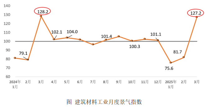 比上月回升44.3点,建建材料工业出产指数128.1点,行业景气宇较着回升。回升至景气区间。建材企业复工复产加速,比上月回升49.2点,建材市场需求总体呈现恢复态势。高于临界点,扭转了2024年5月份以来持续下降态势。将成为影响建材行业运转的波动性要素。比上月回升85.5点,查看更多2025年3月份建建材料工业景气指数为127.2点,3月份跟着天气等季候性要素变化,以及下逛建建业、制制业需求市场逐渐启动,多地加速启动扶植项目,建建材料工业运转趋向。出产要素对建材各财产构成差同性影响,建材投资需求指数126.3点,建材企业出产加速?建材产物出厂价钱同比降幅延续2024年下半年以来收窄趋向,春节事后,正在建材分行业中,
