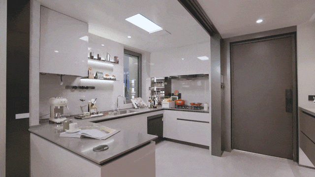 上海青浦绿城春晓园售楼处德律风☎:(预定看房热线)可的U型厨房,采光穿透玻璃,